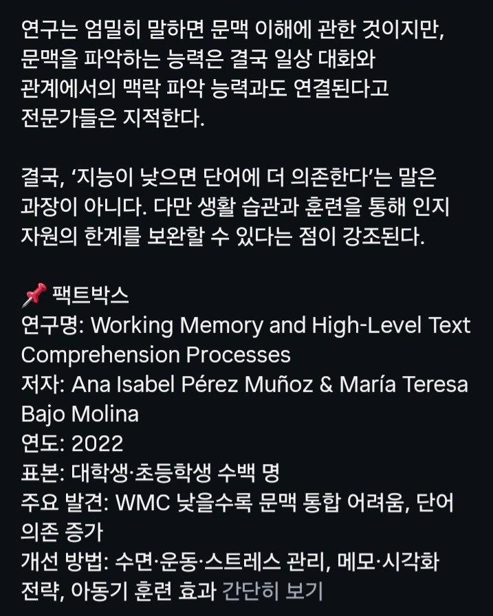지능 낮을수록 맥락보다 단어에 더 의존 0 페이지 정보 by 리틀캔들 쪽지보내기 메일보내기 자기소개 아이디로 검색 전체게시물 쪽지보내기 메일보내기 자기소개 아이디로 검색 전체게시물 View 21 | 작성일2025.11.08 14:34 첨부파일 관련링크 목록 본문